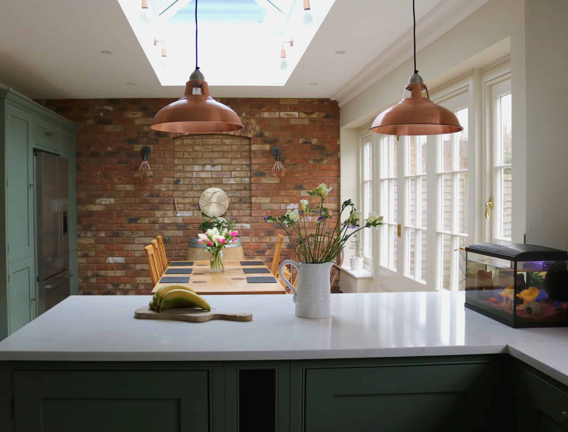 The client came to us with a vision. We collaboratively worked with them on the design process, coming up with the kitchen of their dreams, within budget. The design combines a traditional shaker look with a contemporary and modern feel, brought together by state of the art quartz worktops, appliances, boiling water tap, well designed larders and bi-fold countertop cabinet to hide clutter! Following this, we were able to add wall panelling to a number of rooms in the property.